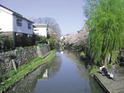 私たち近江八幡人が全国の皆様に是非来ていただきたい場所があります。それは八幡堀です。400年前、ここ近江八幡に城下町を築き上げた豊臣秀次時代にできたお堀です。その遊歩道を歩いていると、忙しい毎日を過ごしている私たちに暦がなくても季節を教えてくれます。春になれば桜が満開に咲き、花びらが遊歩道に一面ピンク色の絨毯を敷いてくれます。5月には湖水に反射される菖蒲の花、梅雨になると紫陽花が毎日笑顔をくれます。夏には大きな柳の木、桜並木が強い日射しを遮ってくれて、水郷めぐりの和船が通ったあとの揺れる水面が暑さを忘れさせてくれます。秋には八幡堀周辺から見上げる八幡山が真っ赤な紅葉の着物をまとい、冬には葉の散ってしまった枝々に雪が腰掛ける。八幡堀は、一年中、訪れる人それぞれに違った魅力を感じさせてくれます。是非皆様も時間を忘れて、八幡堀の香りを感じて頂ければ幸いです。 近江八幡について詳しくはこちらもご覧ください。